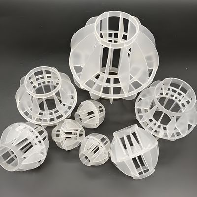 Il riempitore per il trattamento dell'acqua è realizzato in plastica polipropilene a forma sferica, con un anello di rinforzo al centro della palla lungo tutta la circonferenza.Ci sono dodici petali sferici sopra e sotto l' anello., disposti in un modello radiale lungo l'asse centrale. È adatto per la rimozione di cloruro di carbonio.